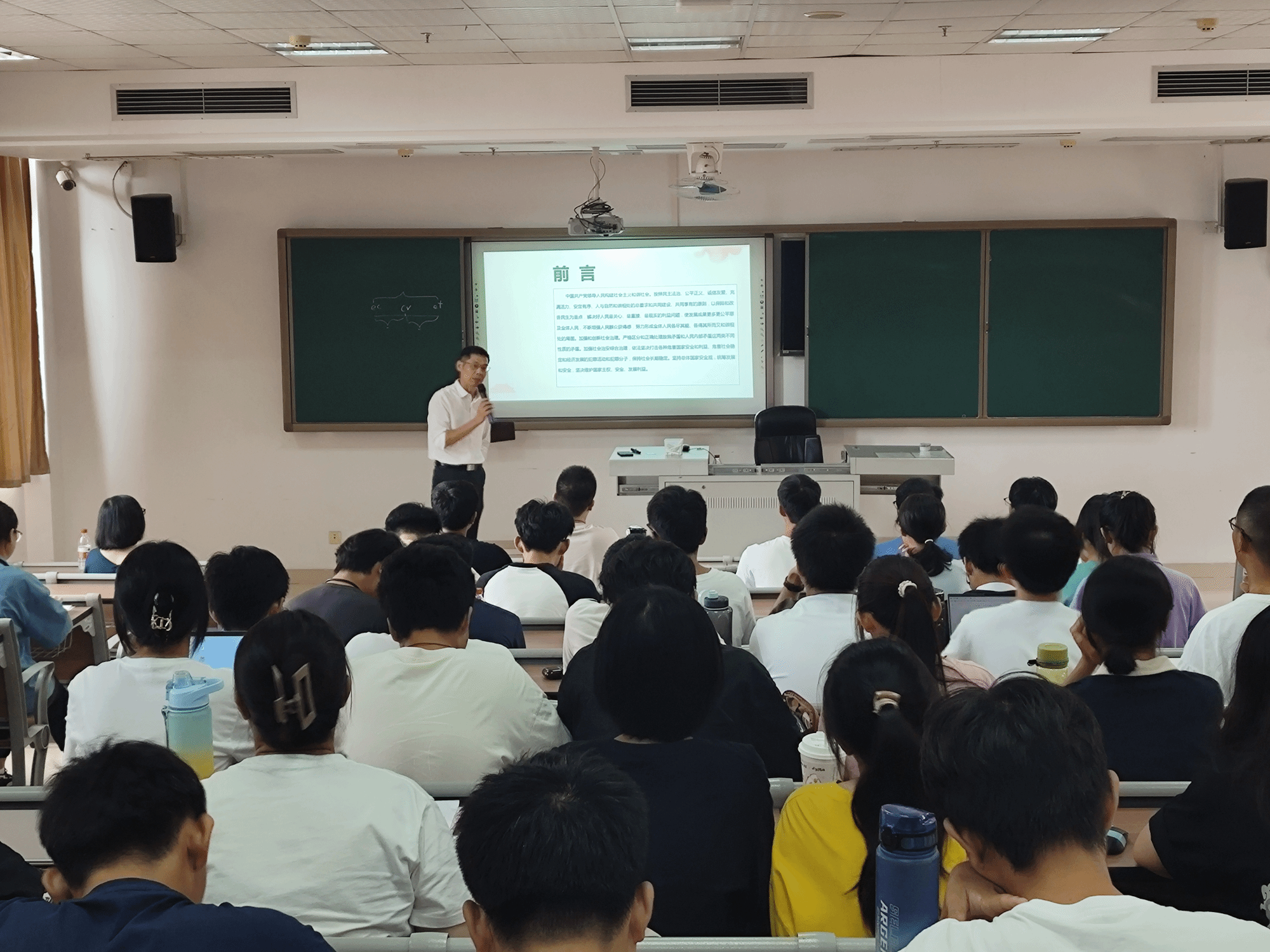 课上,柳海山书记先是带领同学们重温党的光辉历程,然后引入党的二十大报告中有关“国家安全”的论述以及维护与筑牢校园安全屏障,化解安全风险隐患的具体做法。