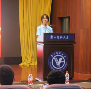 2024级何先玉作为研究生新生代表发言,他表示作为一名广医人,需要目标明确,切实付出,正所谓“行胜于言,质胜于毕”,空谈是误事的陷阱,务实是成功的阶梯。