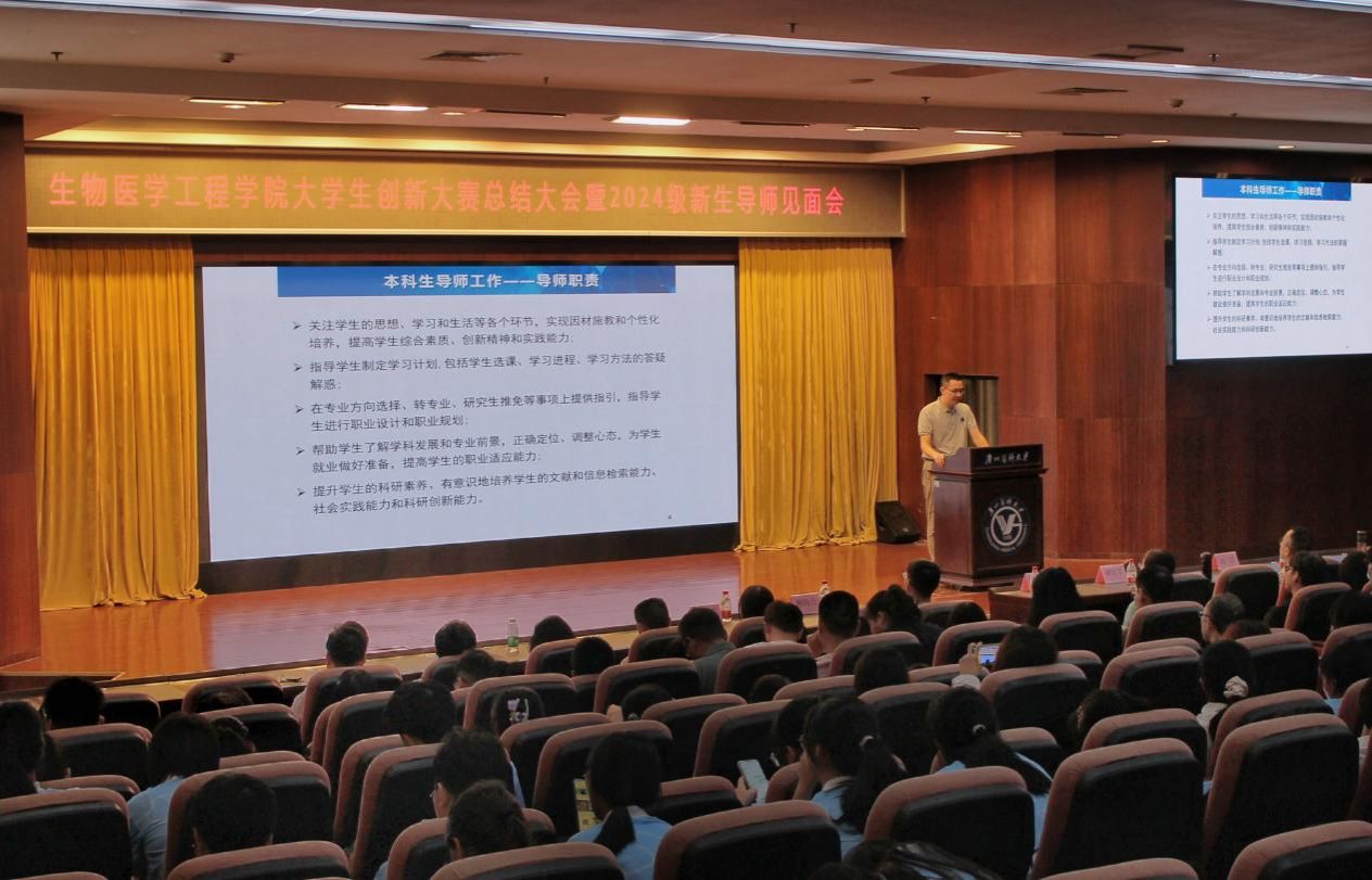 最后,谢国喜副院长详细介绍了学院本科生导师制的实施进展,他指出“本科生导师”是学生的引路人,在教学、科研、就业等每一个学生的重要选择上都扮演着至关重要的角色。同时,为落实“以创新引领创业、以创业带动就业”,我院正在积极筹备“广医-广实创新特训营”,他强调本科生导师要扮演专业学习的领航者角色,引领学生在学业探索与职业规划上明确方向,同时也鼓励同学们主动出击,与导师紧密沟通,携手并进,勇攀学术与人生的高峰。