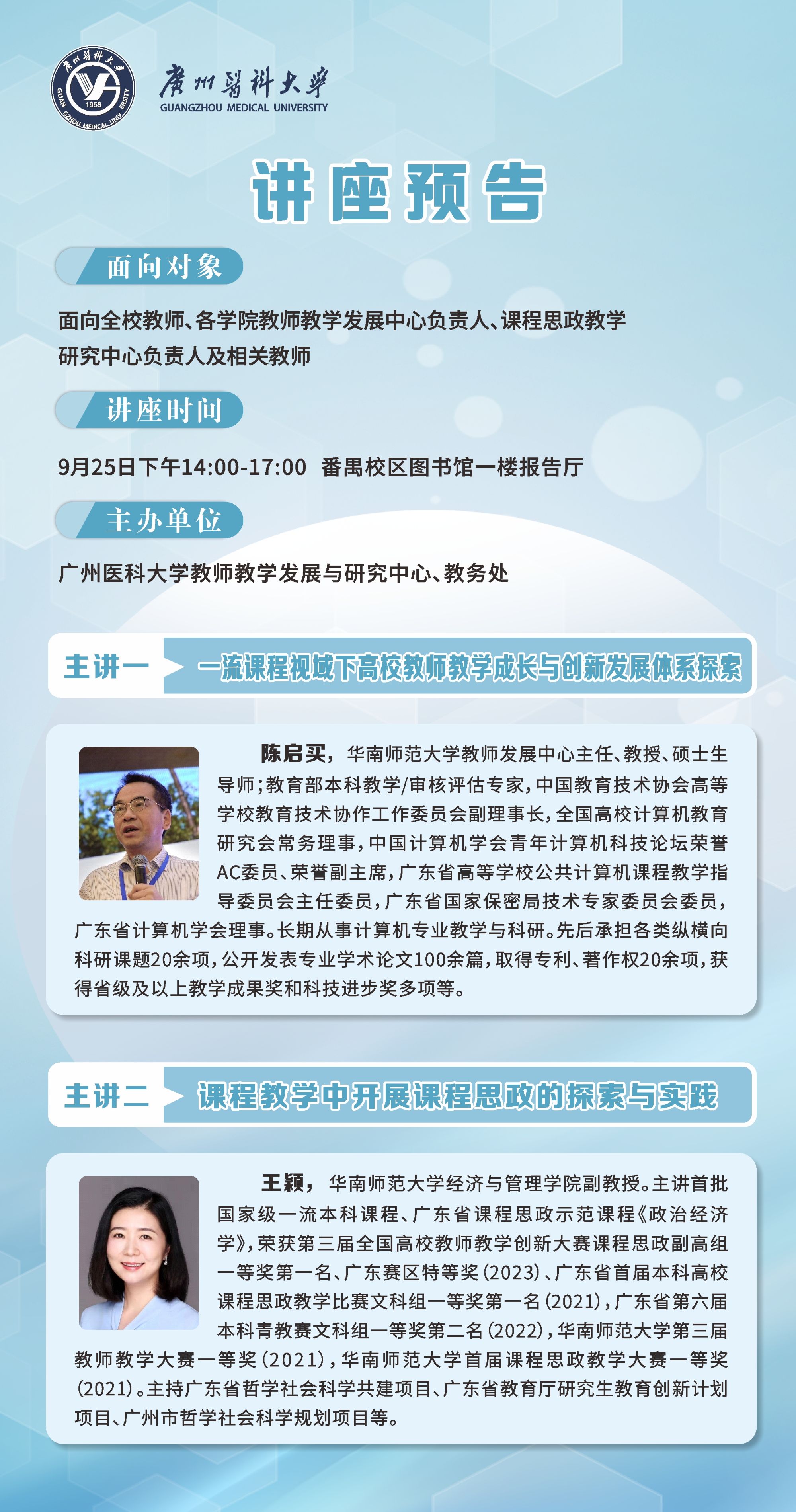 【讲座预告】教师教学发展专题讲座