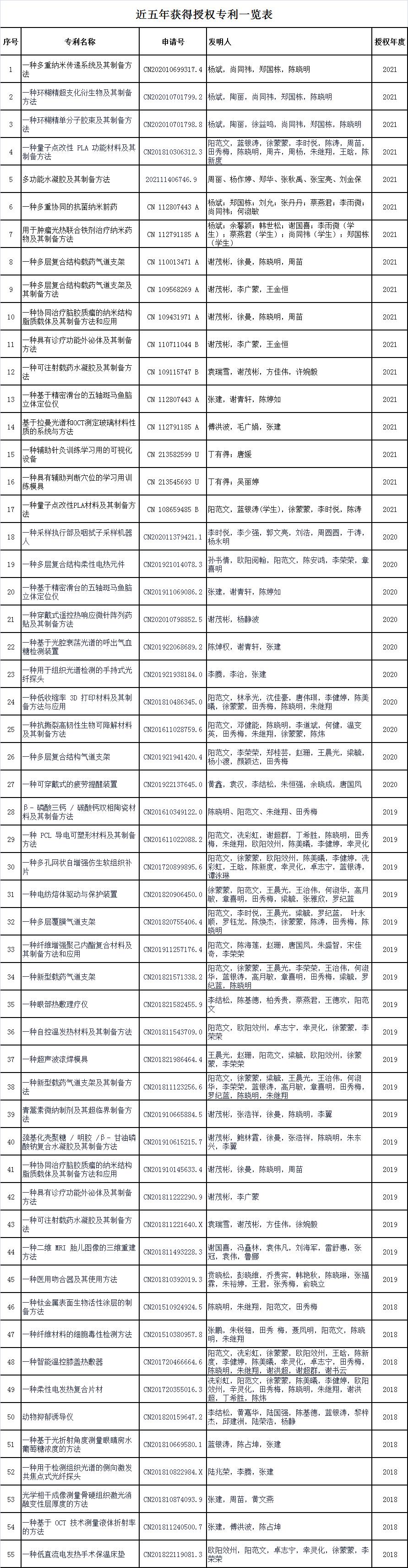 近五年获得授权专利一览表