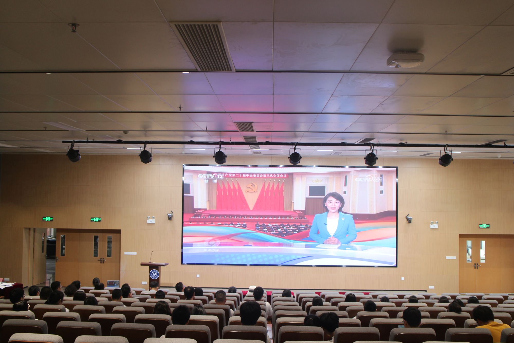 与会人员观看了《<高举改革开放旗帜>第一集:开辟中国式现代化广阔前景》,通过观看视频深刻领会党的二十届三中全会精神,更加坚定了继续推进改革开放的信心和决心,极大地激发全体教职工干事创业的热情与斗志。