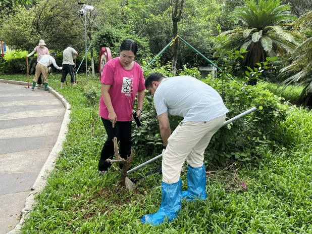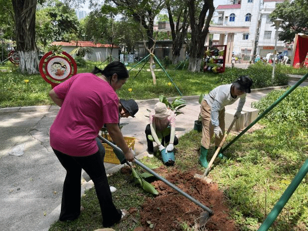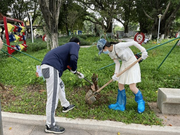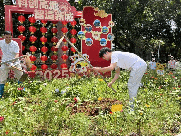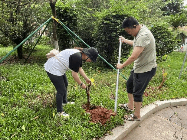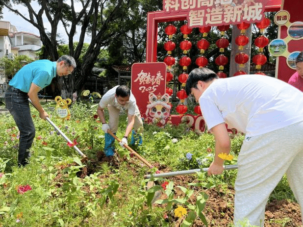 党员代表们在新造公园开展“美丽社区,有你有我”植树活动,共同栽种绣球、三角梅等花卉,以实际行动践行习近平生态文明思想,助力绿美广州生态建设。