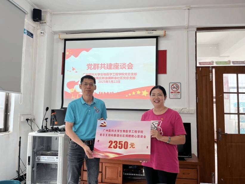 随后,学院党总支书记柳海山与新造社区党总支书记黎爱滨上台,举行微心愿资金捐赠仪式。