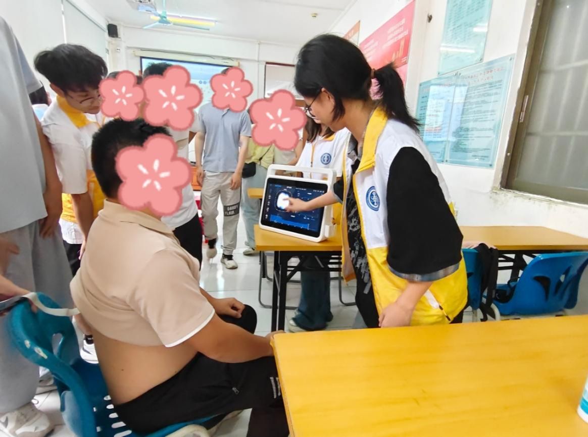 在师生的引导下,居民积极参与测试,体验了这些高科技医疗设备。