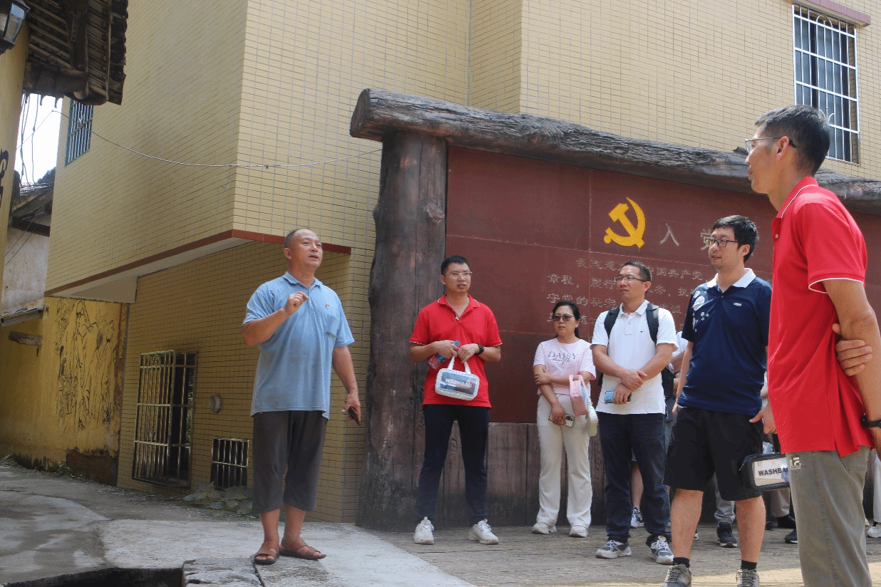 黄花村委工作人员向各位老师讲解黄花村红色历史