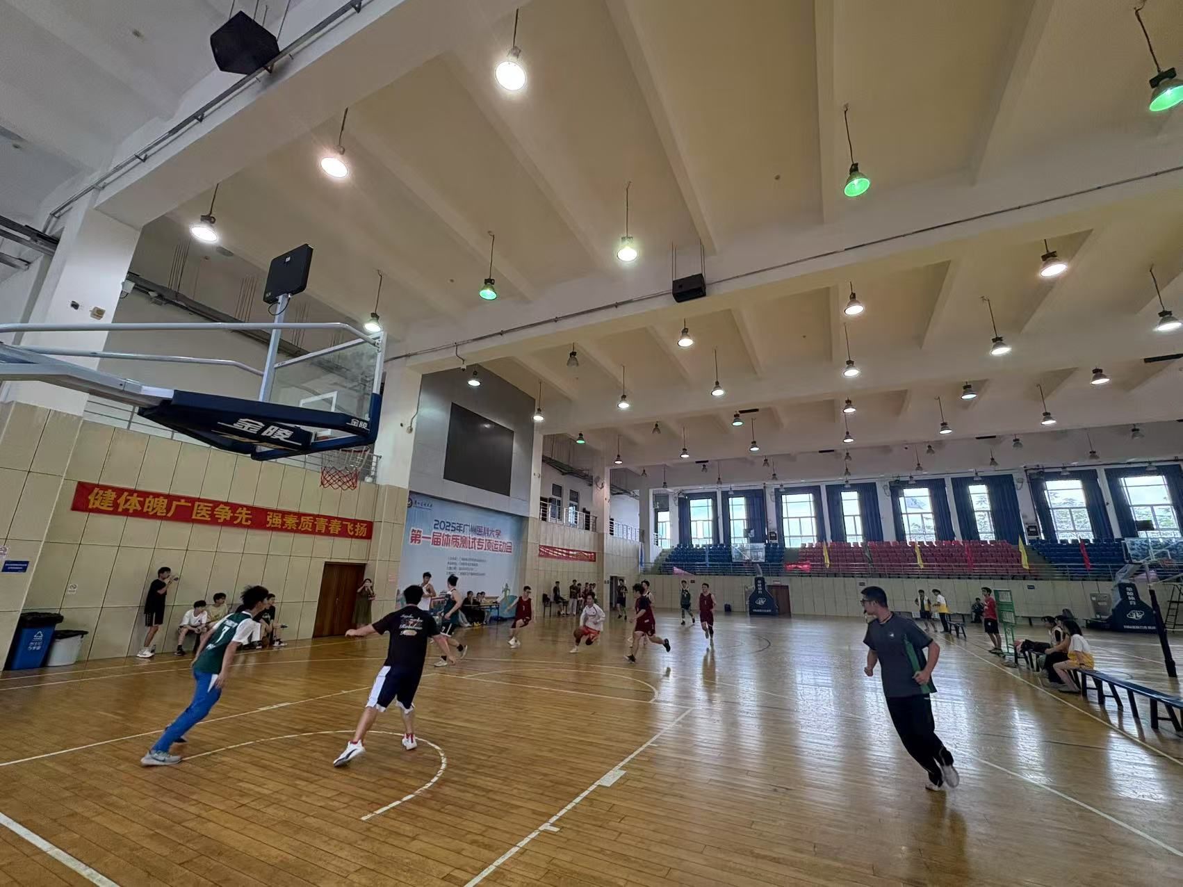 首场比赛在教工队与本科生队之间展开。凭借体能上的优势,本科生队在激烈的对抗中逐渐拉开比分,第三节结束时领先多达20分。短暂调整后,教工队在第四节全队状态迅速回升,加强了防守,进攻端也多点开花,中投和三分球手感火热,比分一度追至仅差3分。最终,教工队以71:76惜败本科生队,遗憾未能逆转。