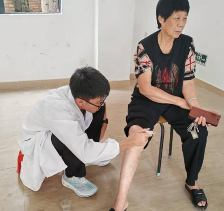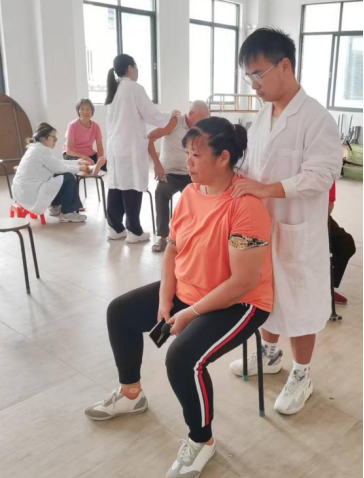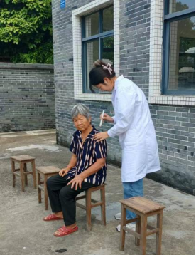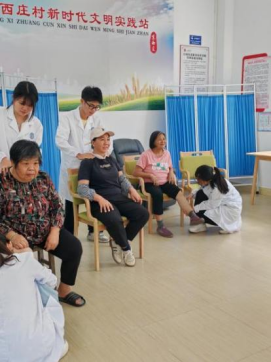 活动当天,微阳志愿服务队的成员们走进西庄村,为村里的老人们提供量血压、按摩以及艾灸的服务。在为居民提供服务的同时,也与他们聊天,了解居民朋友们的身体情况并给出一定建议,将健康服务的种子播撒在群众心中。