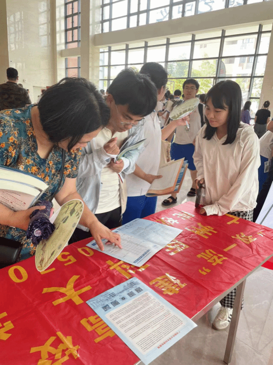 6月27日,招生宣传志愿者同学前往广大附中南沙实验学校开展招生宣传。多名学子、家长详细了解我校招生宣传相关信息。