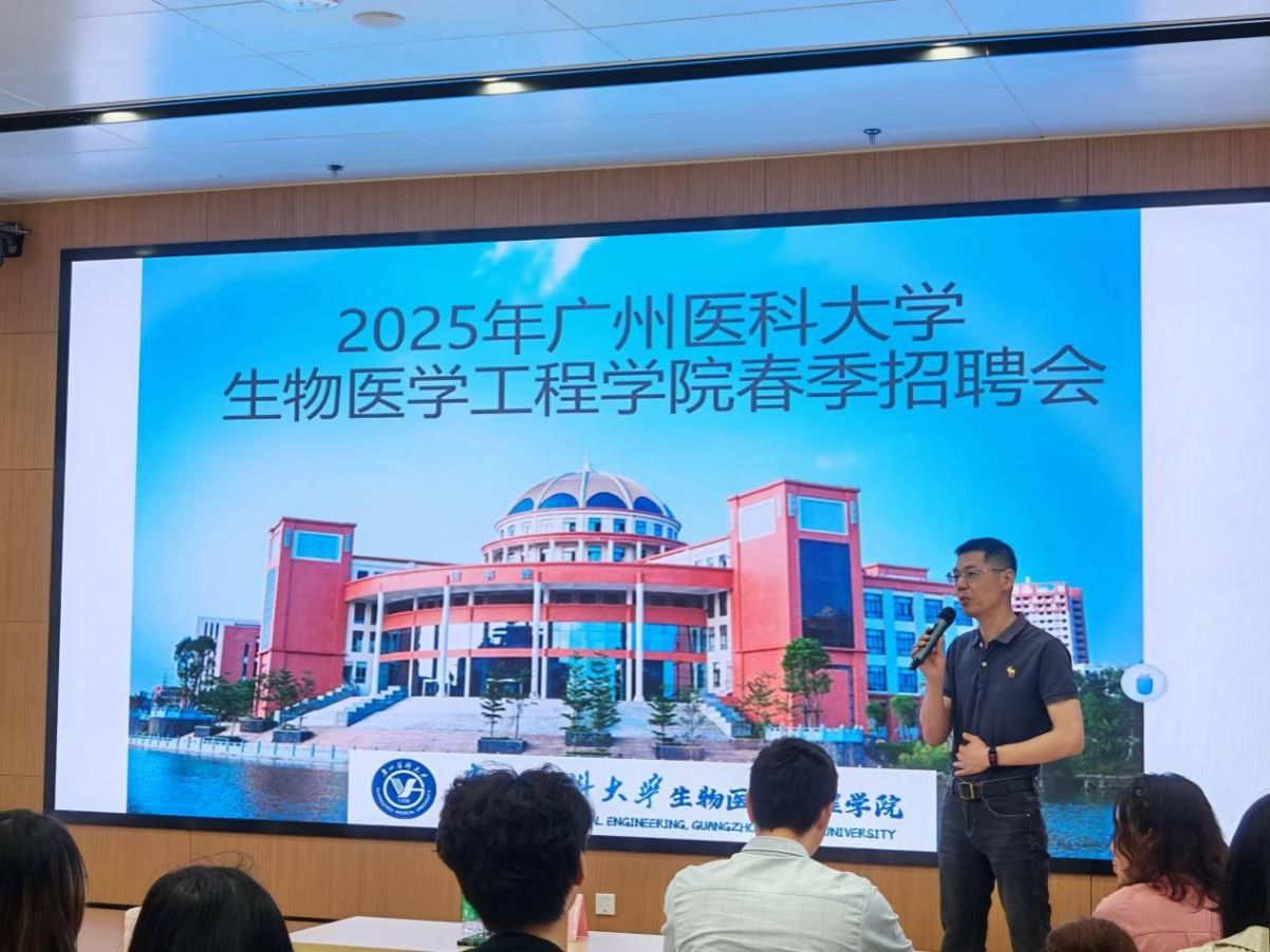 为推进我院2025届本科生和研究生毕业生就业工作,提升人才培养和就业质量工作,我院于2025年4月11日上午在广州医科大学番禺校区学术交流中心204开展春季招聘会活动,共邀请四家企业参加本次招聘会,分别是氢质子医疗科技(深圳)有限公司、天津萨伯曼医疗设备有限公司、深圳长久康联生物科技有限公司、粤嵌(广州)通信科技股份有限公司,本次招聘会四家企业提供十余个就业岗位,涵盖生物医学工程、生物技术、药学等专业,旨在搭建企业与毕业生交流平台,为毕业生提供良好的职业发展机会。