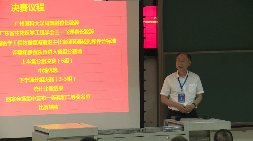 图3 广东省生物医学工程学会理事长王一飞致辞 图4 广东省本科高校生物医学工程教学指导委员会主任冯前进宣读比赛规则