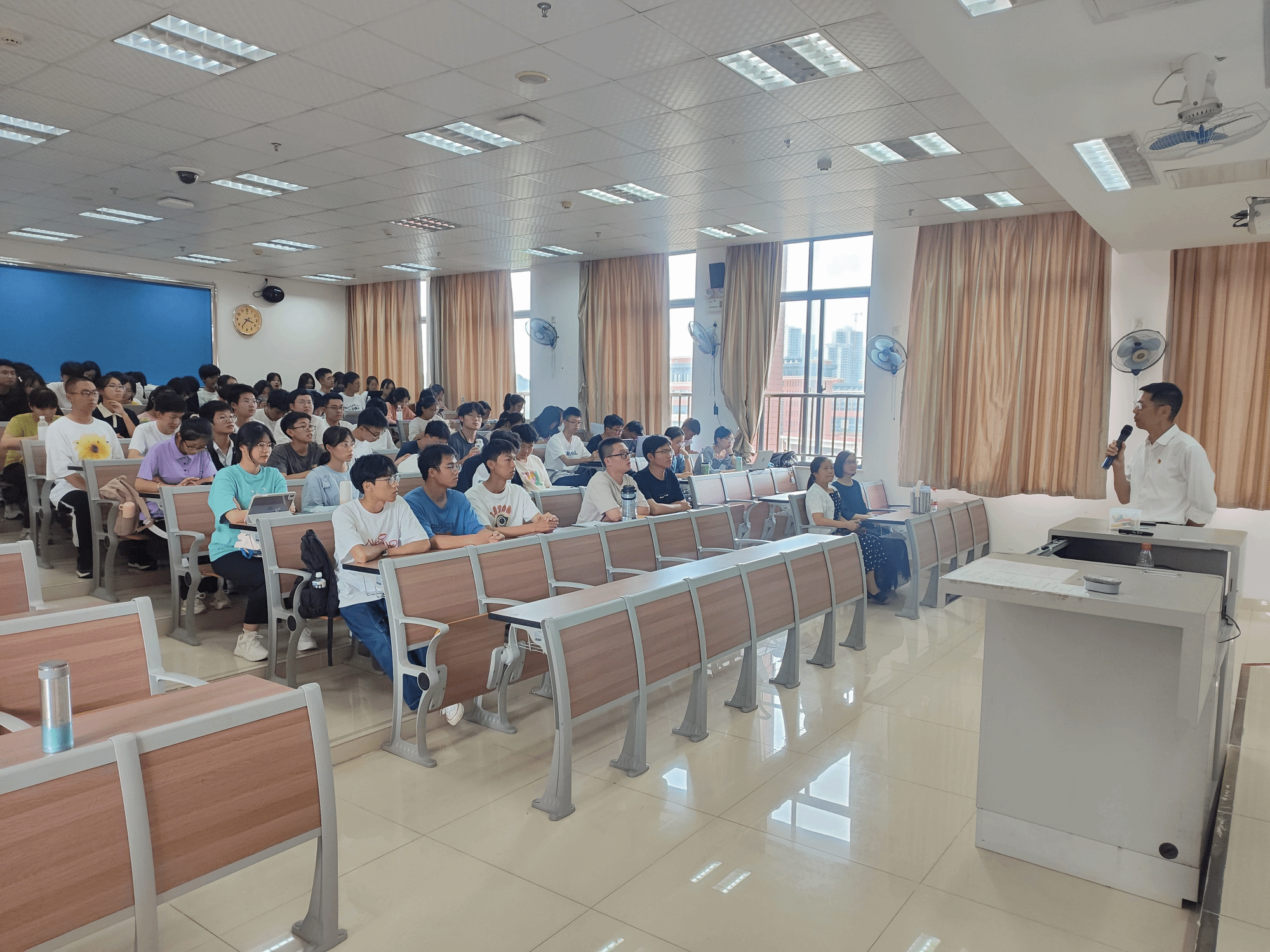 2023年10月13日下午,无码人妻熟妇av又粗又大党总支书记柳海山在番禺校区A3-510教室,以“提高安全意识,筑牢校园安全防线”为题,为我院2023级本科生讲授“书记第一课”。