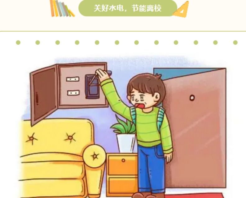 假期离开宿舍要做到“人走水电关”,特别是空调,电脑要及时切断电源。留宿同学要正确使用电器设备,不乱控乱接电线和插座,不超负荷用电,不适用违章电器,禁止乱拉电线到室外。